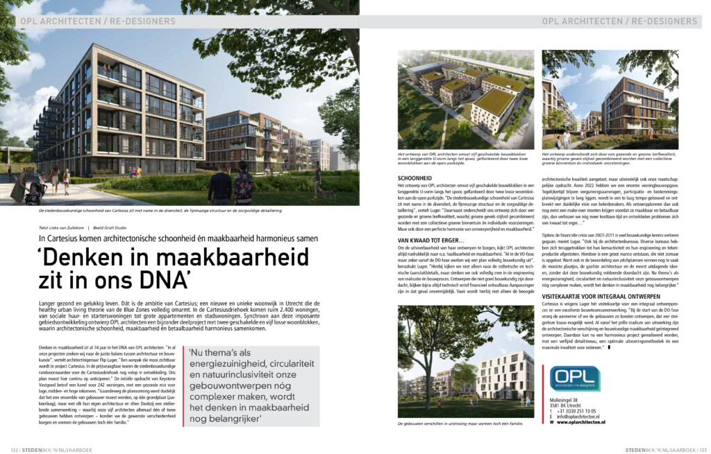 Langer gezond en gelukkig leven. Dát is de ambitie van Cartesius; een nieuwe en unieke woonwijk in Utrecht, die de healthy urban living theorie van de Blue Zones volledig omarmt. In de Cartesiusdriehoek komen bijna 3000 woningen, van sociale huur- en starterswoningen tot grote appartementen en stadswoningen. Binnen deze imposante gebiedsontwikkeling werd een bijzonder deelproject van zeven woonblokken ontworpen, waarin architectonische schoonheid, maakbaarheid én betaalbaarheid harmonieus samenkomen.